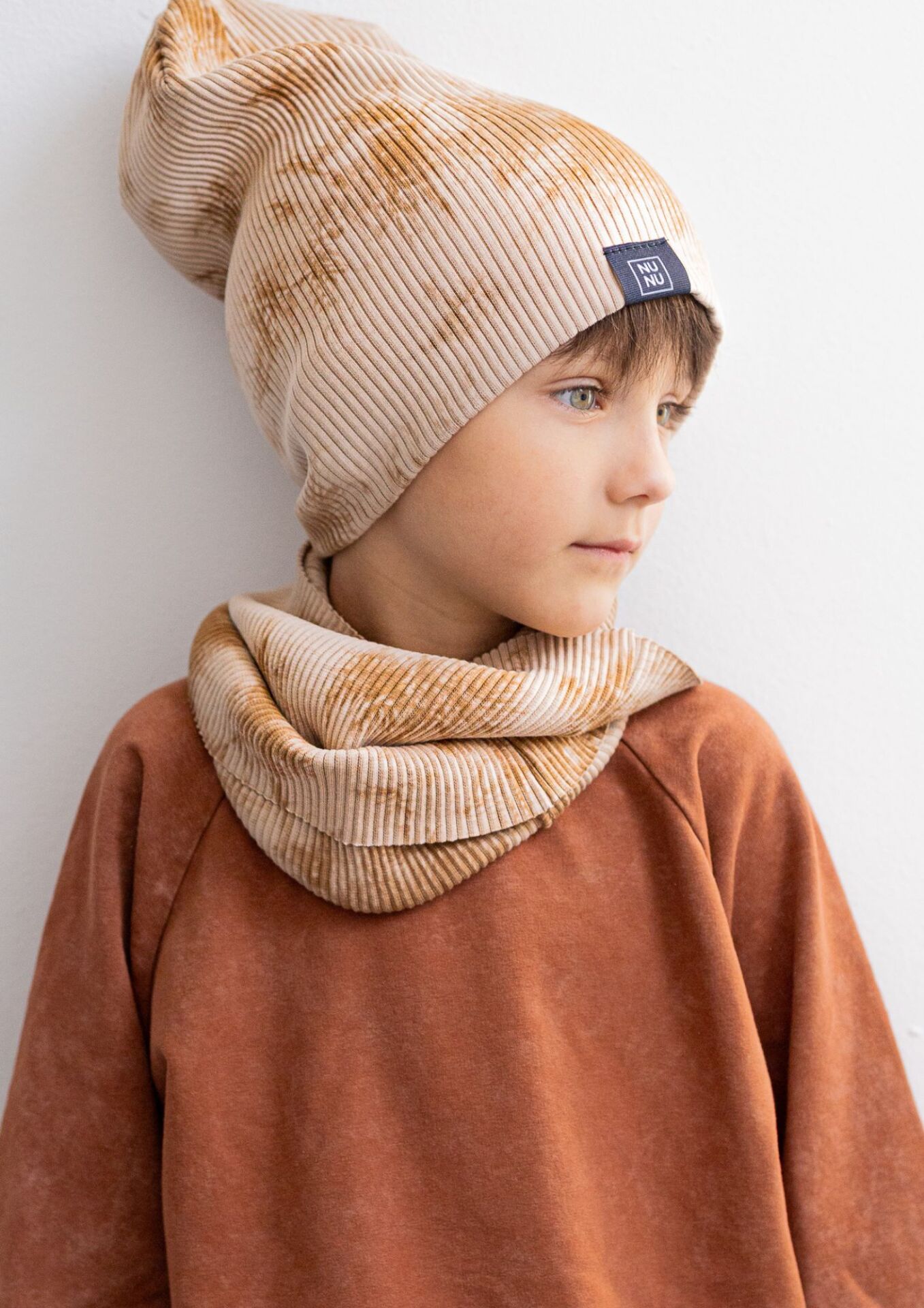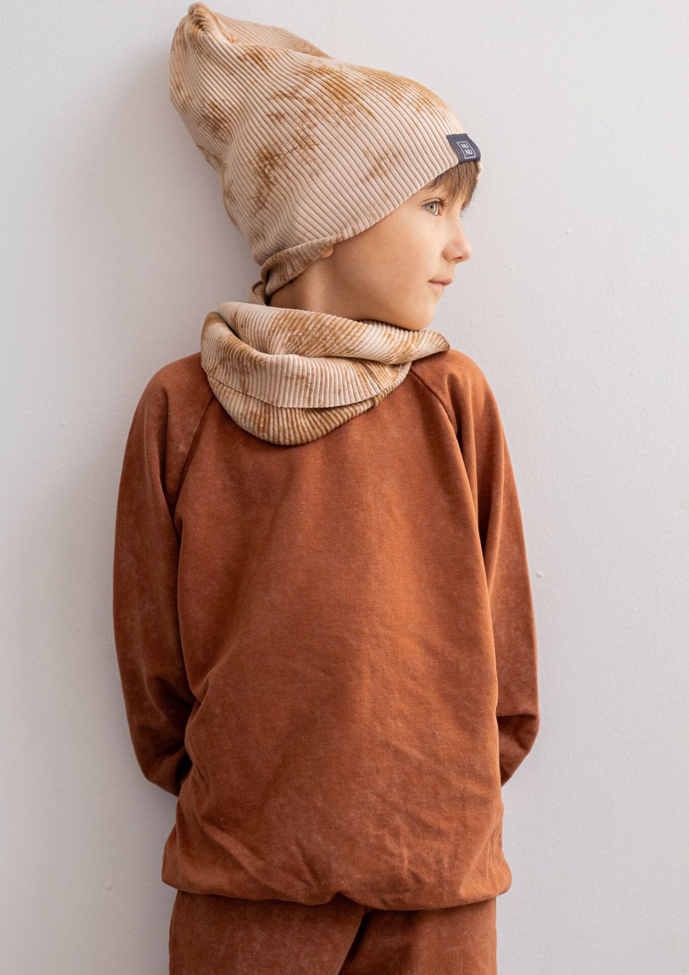 Napisz pierwszą opinię o „Czapka z kominem dziecięca prążek TIE DYE beige”