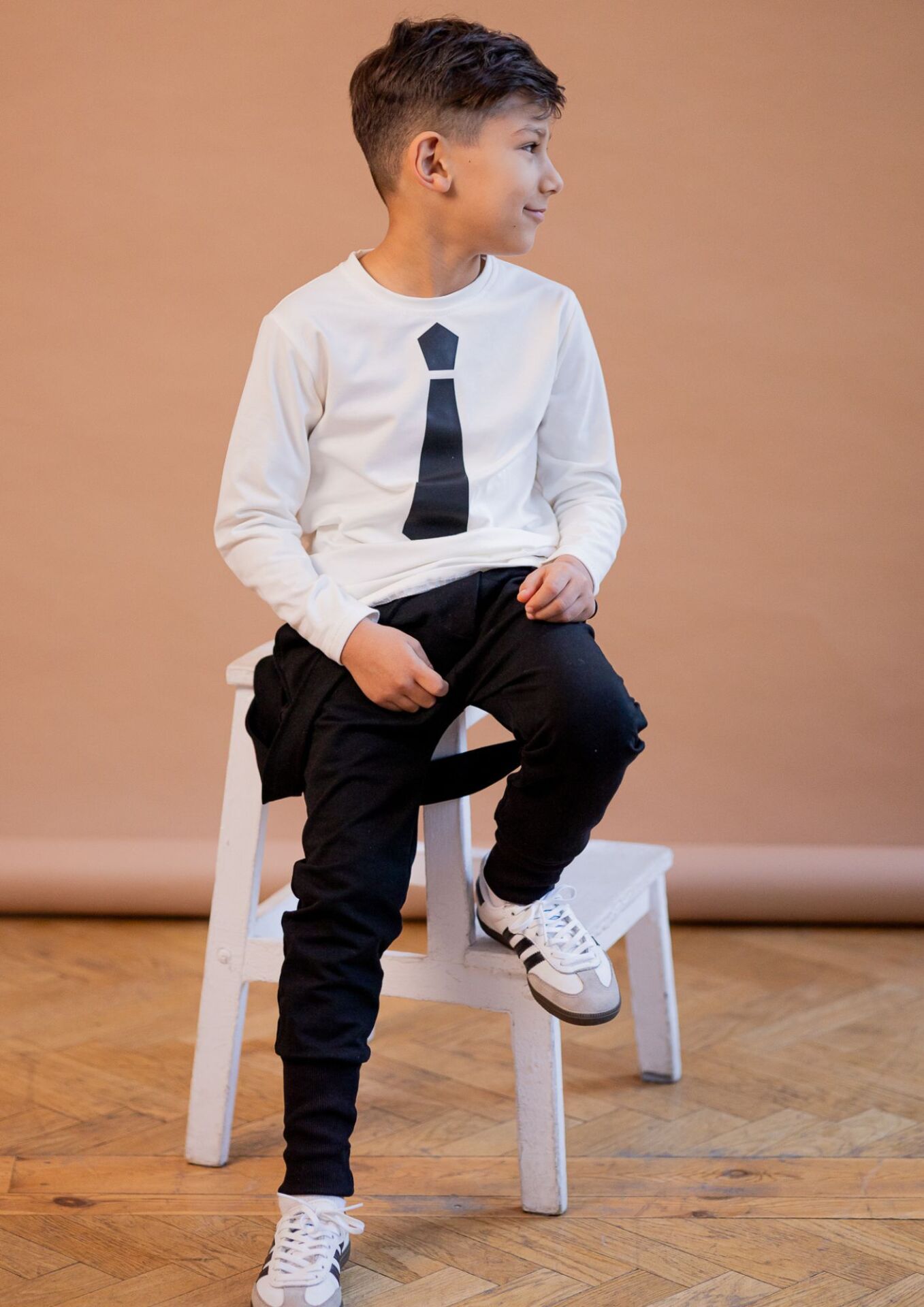 Napisz pierwszą opinię o „Koszulka dziecięca długi rękaw krawat czarny ecru FUN KIDS”