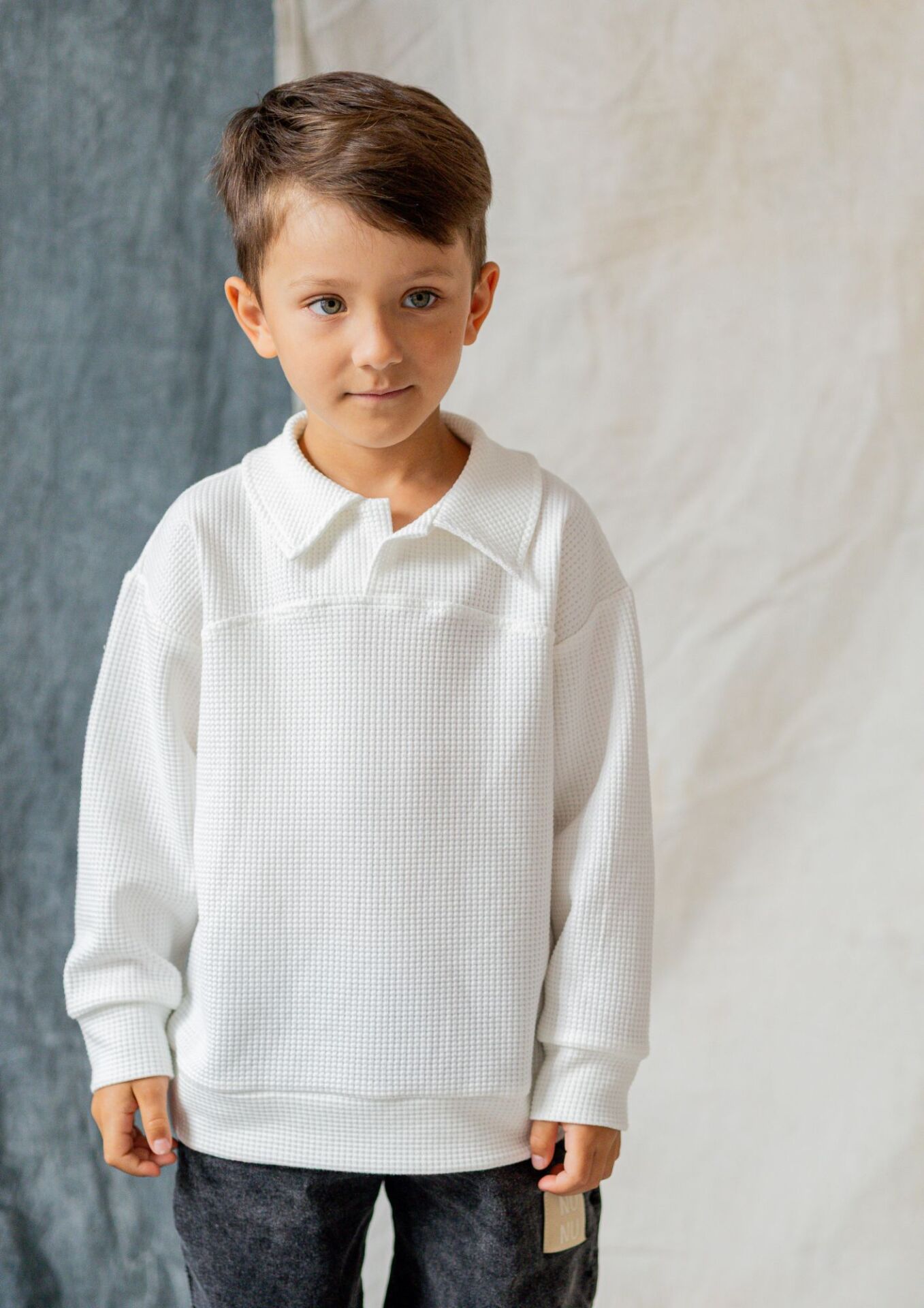 - sweterek uszyty z miękkiej i elastycznej dzianiny WAFEL