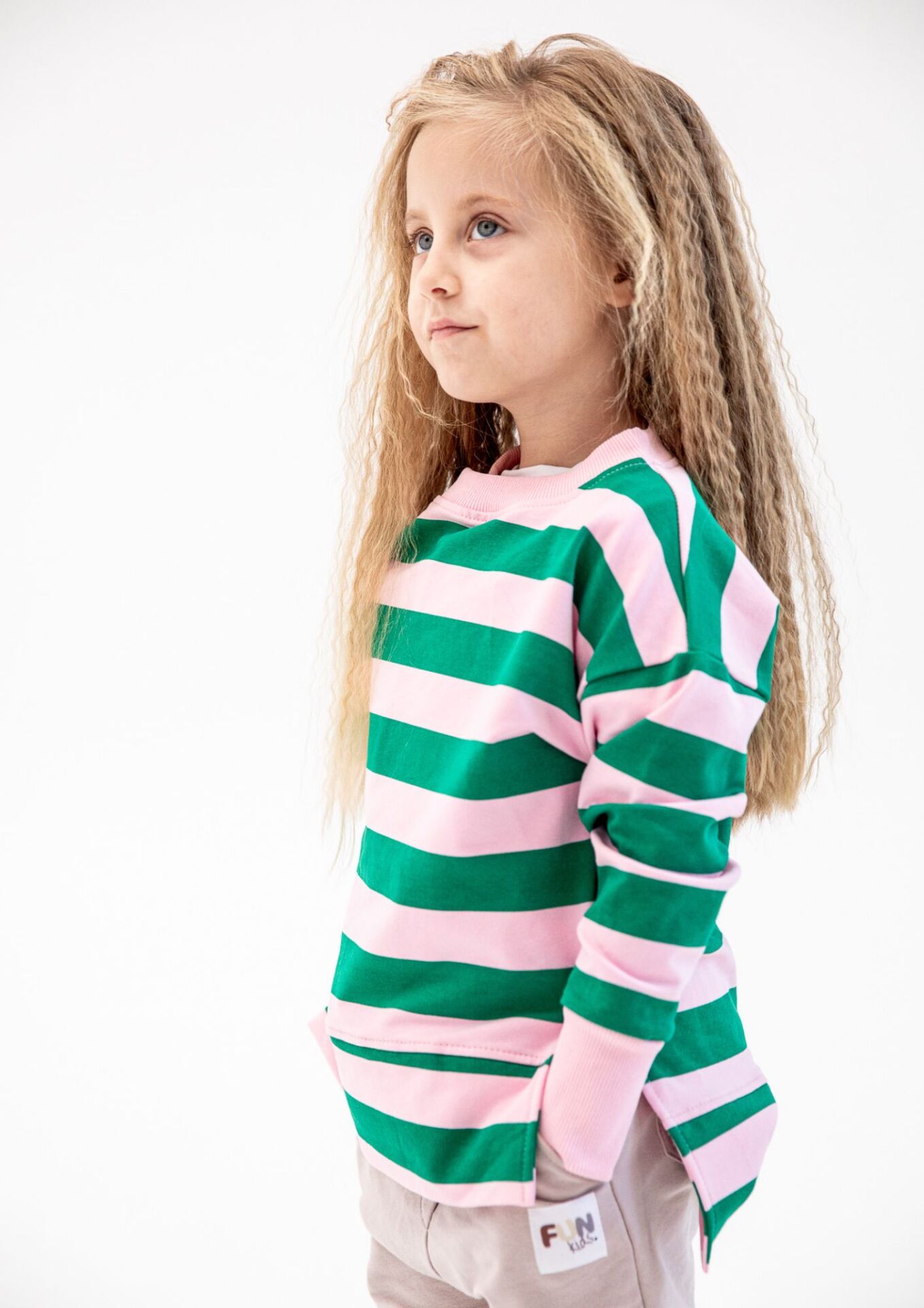 Napisz pierwszą opinię o „Bluza dziecięca over pasiak różowo-zielona FUN KIDS”